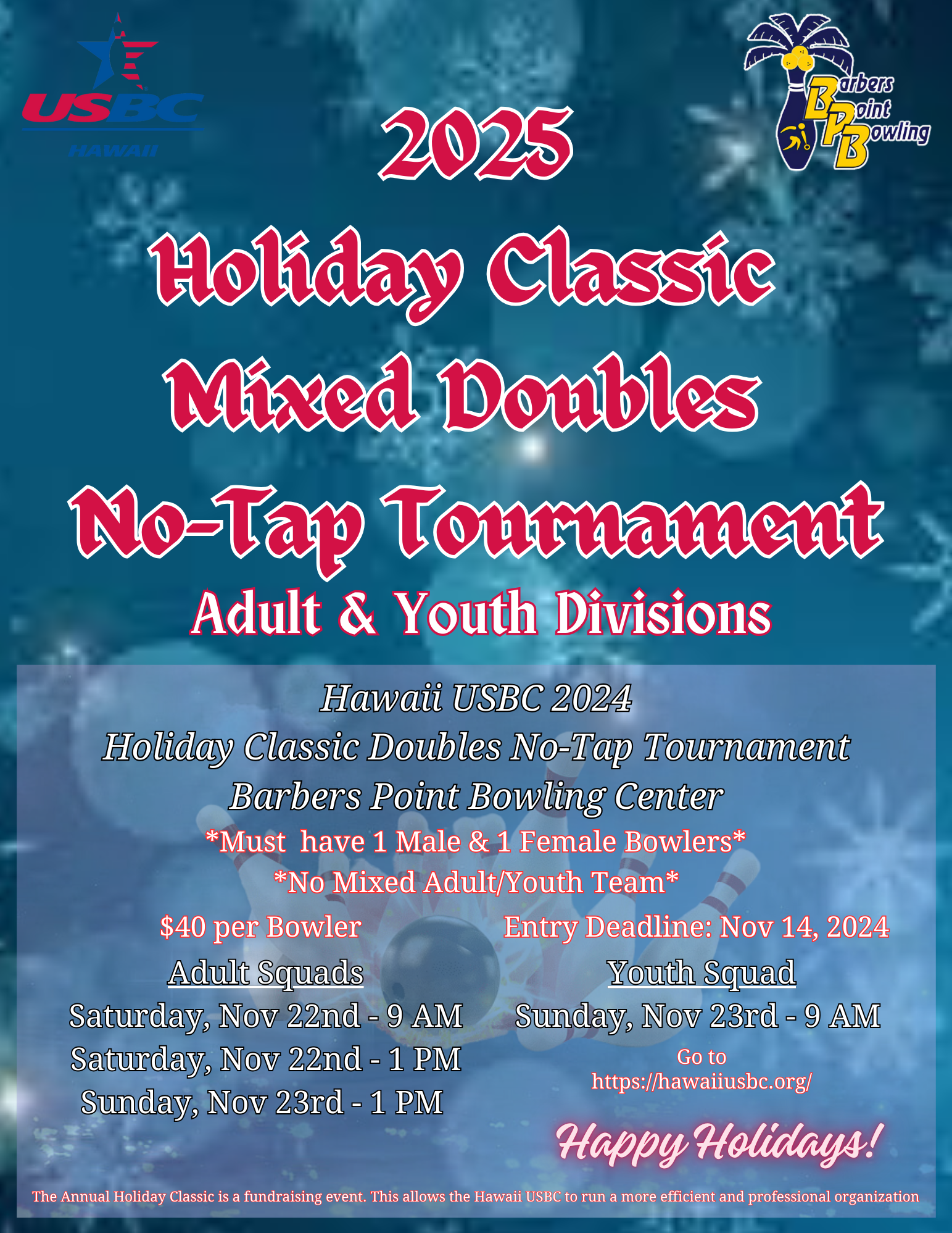 We are an organization whose mission is to uphold the standards of tenpins in Hawaii and inform, educate and service all of Hawaii’s bowlers. We work in partnership to protect the future of bowling and ensure the integrity of our sport. Providing programs and services to our members while enhancing their bowling experience is our number one goal.